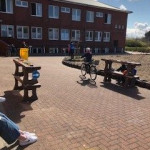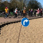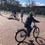 In diesen Wochen üben die Schüler der dritten und vierten Klasse das sichere und korrekte Radfahren im Straßenverkehr. Auch wenn die Kinder auf ihrer Insel Zebrastreifen, Ampeln und viele Verkehrsschilder vermissen, so gelten dennoch alle in der Straßenverkehrsordnung festgelegten Regeln auch auf der autofreien Insel Langeoog. Also wird fleißig geübt, alle lernen mit- und voneinander, wie hier beim Geschicklichkeitsparcours, den die Viertklässler auf dem Schulhof vorbereitet haben.