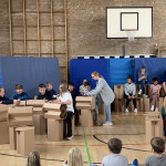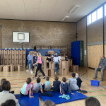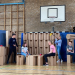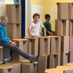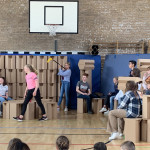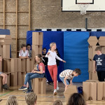 In den letzten zwei Wochen gab es sehr viel frischen Wind an der Inselschule: Mit dem Theaterpädagogen Stefan Falk-Jordan kamen neuer Input, frische Ideen und viel Spaß am Theaterspielen nach Langeoog. Vom 7. Juni bis zum 16. Juni sah der Unterrichtsalltag für die Inselschülerinnen und Inselschüler anders aus, statt Deutsch, Mathe, Englisch konnten sich immer zwei Klassen zusammen spielerisch ausdrücken. Bereits im Vorfeld wurden 100 Papphocker bestellt, die – fertig aufgebaut – für ein stetig wechselndes Bühnenbild sorgten. Mal wurden sie als Tresen genutzt, mal stellten sie einen Strandkorb dar, wurden ein Aufnahmestudio und vieles mehr. Und über das Projekt hinaus werden sie in den folgenden Kunststunden zu einem individuellen Sitzmöbel gestaltet. Angefangen hatte alles damit, dass der Karlsruher Theaterpädagoge, der schon früh eine große Liebe zu Nordseeinseln entwickelte, Kontakt zur Inselschule Langeoog aufgenommen hatte. Während in Baden-Württemberg Pfingstferien sind, wollte er sich über die Landesgrenzen hinaus mit seinen Ideen einbringen. Lehrerin Petra Ahrenholz, die selbst 12 Jahre in der Nähe von Karlsruhe „im Ländle“ gearbeitet hatte, war gleich begeistert und kümmerte sich um die Koordination. So musste ein extra Theaterstundenplan erstellt werden, damit alle Klassen gleichermaßen von dem Projekt profitieren konnten und die Kooperation mit einem kulturellen Verein musste angebahnt werden. Dies war eine Voraussetzung der Landesvereinigung Kulturelle Jugendbildung Niedersachsen e.V. (LKJ), die Kooperationspartner des Zukunftprogrammes des Landes Niedersachsen „“Startklar in die Zukunft“ sind, damit das Projekt durch Fördermittel unterstützt werden konnte. Glücklicherweise fand sich mit dem Shantychor „De Flinthörners“ ein solcher Verein, der sich sofort bereit erklärte, das schulische Projekt zu unterstützen.