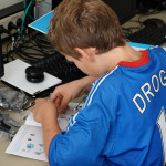 Pünktlich zu Beginn des neuen Schuljahres konnten die Teilnehmenden Schülerinnen und Schüler der IT-AG die neu beschafften Roboter–Bausätze aufbauen, wodurch die feinmotorischen Fähigkeiten trainiert wurden. Später werden sie lernen das „Gehirn“ des Roboters zu programmieren. In unserem Fall ist es ein CyberPi, den man sowohl mit Blockgrafiken, als auch in Micropyhton programmieren kann. Dies ermöglicht die Zusammenarbeit über mehrere Jahrgangsstufen hinweg. An einem erstes Beispielprogramm kann exemplarisch die Funktion der Sensoren, die Auswertung und das Ansteuern der Aktoren verdeutlicht werden; der Roboter verfolgt eine im Kreis auf ein Blatt Papier aufgezeichnete Linie und korrigiert dabei fortlaufend die Fahrtrichtung.