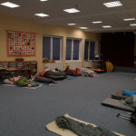 Dann ging es weiter zum köstlichen Buffet, das von den Eltern liebevoll vorbereitet wurde und an Abwechslung kaum zu überbieten war. Anschließend kuschelten sich alle in ihre Schlafsäcke, lasen noch etwas, bevor dann auch eine Gute-Nacht-Geschichte vorgelesen wurde.