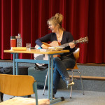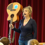 Am Mittwoch wartete das nächste Highlight auf die Inselkinder. Die Inselschule bekam Besuch von der bekannten Autorin Bettina Göschl. Diese ist häufiger auf der Insel anzutreffen, diesmal hatte sie aber als einziges Ziel die Aula der Inselschule, wo alle Grundschulkinder schon gespannt auf sie warteten. Mit im Gepäck hatte sie ihre Gitarre und verschiedene Bücher, auf die sich die Kinder später begeistert stürzten.