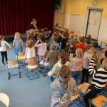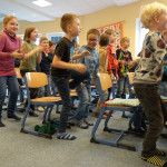 Und sofort ging es mit Schwung los. Es wurde gesungen, getanzt und auch vorgelesen. Mit dem Lied „Piraten ahoi!“ können sich die Kinder als Insulaner voll und ganz identifizieren. Die Bücher von Bettina Göschl sind den Kindern auch bestens bekannt. In der Schulbücherei können viele der Titel ausgeliehen werden und natürlich werden sie auch privat von den kleinen Bücherwürmern verschlungen und so waren die Helden aus der „Nordseedetektivreihe“, Emma und Lukas, keine Unbekannten für die Klassen.