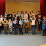 Eingeleitet wurden die Feierlichkeiten von den Klassen 3 und 4 unter der Leitung von Karsten Kugelberg, der die Kinder musikalisch an der Gitarre begleitete.