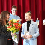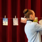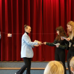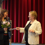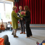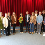 Die Abschlussklasse 10 hatte etwas Besonderes vorbereitet: Sie trug biblische Segenswünsche von jeder Klasse vor und klammerte diese an eine Wäscheleine, die sie anschließend zusammen mit einem Blumenstrauß überreichten. Petra Ahrenholz war sichtlich gerührt.