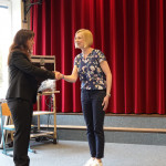 Danach beleuchtete die Dezernentin der Landesschulbehörde, Evelyn De Vries, wichtige Stationen aus dem Leben der neuen Schulleiterin, referenzierte diese mit ihrem neuen Amt und wünschte für die heutige Feierlichkeit starke Gegenwartspräsenz.