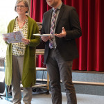 Die beiden Langeooger Kirchen, vertreten von Susanne Wübker und Christian Neumann, zeigten gemeinsam ein Bild mit den beiden Kirchen und der Schule. Darauf eingezeichnet waren zwei Bögen die eine Verbindung zwischen der Schule und den Kirchen in Form eines symbolträchtigen Vogels bildeten.