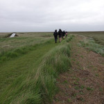 Über den alten Sommerdeich, der früher die sommerlichen Weideflächen geschützt hat, ging die Wanderung tiefer ins Watt hinein. Auf dem Weg betrachtete die Gruppe den Spülsaum bzw. Teek vor dem Sommerdeich und die darunter liegende Spülsaumgesellschaft. Entlang des Weges waren auch ein Strandläufer- und ein Möwennest zu sehen. Die Eier waren ungeschützt und wurden durch die Nestform und Sonnenausrichtung warm gehalten. Bodenräuber brauchen sie im Watt nicht zu befürchten.