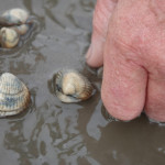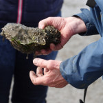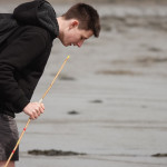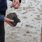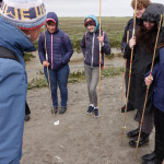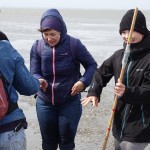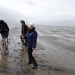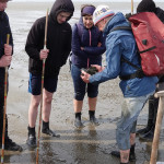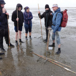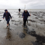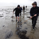 Die auf dem Rückweg wieder eingesammelten Markierungsstöcke zeigten uns einen schnell ansteigenden Wasserstand an. Mit einer Mistgabel wurden noch Wattwürmer ausgegraben und deren Lebenszyklus erläutert. Zum Schluss gab es noch ein köstliches Mahl aus der Wattküche: Strandmelde, Queller und Strandbeifuss sowie die Strandsode.