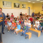„Jetzt geht´s los…!“ Selten fieberten die Schülerinnen und Schüler der Klassen 1 – 4 dem Unterrichtsbeginn so gespannt entgegen wie am vergangenen Freitag (18.8.23). „Jetzt geht´s los…!“ So hieß auch schon das erste Lied, das Clemens Bittlinger, Pfarrer für Mission und Ökumene und seit vielen Jahren als Kurpastor im Sommer zu Gast auf Langeoog, mit den Kindern anstimmte. Clemens Bittlinger ist vor allem ein äußerst vielseitiger und bekannter Liedermacher und Buchautor. Viele seiner Songs haben den Weg ins allgemeine Liedgut der Kirchengemeinden gefunden. Religionslehrerin Kirsten Rottmann hatte Clemens Bittlinger deshalb zu einem exklusiven Konzert für die Grundschule in die Aula der Inselschule eingeladen. Nach der Begrüßung durch die Schulleiterin Petra Ahrenholz begeisterte er mit einer Auswahl seiner Lieder, u.a. mit: „Die drei Affen“, „Froschmotette“, „Danke, du hast auch an mich gedacht“. Mit dem bekannten Segenslied „Und nun geh du deinen Weg“ endete das besondere Konzert. Die Zugabe gestalteten die InselschülerInnen selbst, indem sie mit Begleitung durch den Liedermacher das Lied der Inselschule