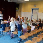 Susanne (Sue) Glanzner besuchte heute die Inselschule und las der ersten und zweiten sowie der dritten bis sechsten Klasse aus den Büchern „Kalle Komet“ und „Shaiko“ vor.
