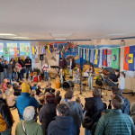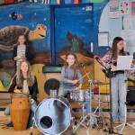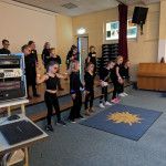 Auch in der Aula war der Livestream zu sehen; direkt im Anschluss gab es dann aber noch zwei weitere Highlights! Erst trat die Kindertanzgruppe des TSV unter der Leitung von Claudia Jänecke „De Wippsteertjes“ auf und heizten dem Publikum ein. Im Anschluss stellte auch noch der Schulchor, bestehend aus den Klassen 4 und 5, sein Können unter Beweis. Geleitet und an der Gitarre begleitet wurde er von Lehrer Karsten Kugelberg.