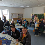 In den Klassenzimmern waren die Tische liebevoll gedeckt und bei fair gehandeltem Tee und Kaffee konnte man entweder den Gospelchören per Livestream lauschen, die in der Inselkirche auftraten, oder – wer es ruhiger mochte – bei einer Fotoshow der letzten IUS-Treffen entspannen.