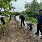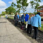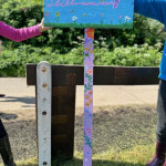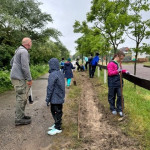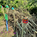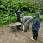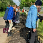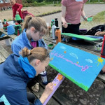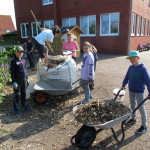 Die anderen Klassen nahmen u.a. die Schulhofverschönerung in Angriff: Es wurden Holzschilder für den Fußballkäfig bemalt, eine Benjeshecke angelegt, das Volleyballfeld für die geplanten Spielgeräte vorbereitet, Mulch verteilt und vieles mehr. Die Kreativität kam auf jeden Fall nicht zu kurz. Tatkräftig und ideenreich wurde die Gruppe unterstützt von Deff Westerkamp, der sich auch im Rahmen der Schulgarten-AG immer wieder einbringt. Die Geocachinggruppe informierte sich anfangs über den Einsatz und die Nutzung von Koordinaten, bis dann eine Strecke – unterstützt vom Vorsitzenden des Heimatvereins, Erhard Nötzel – erarbeitet und getestet werden konnte.