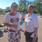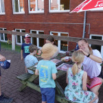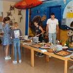 Zusätzlich konnte man sich beim Kinderschminken verwandeln lassen oder Stofftaschen bemalen. Auch der kulinarische Genuss kam nicht zu kurz. Neben einem wieder einmal äußerst abwechslungsreichen Kuchenbuffet, das von den Eltern der Inselschule ausgerichtet wurde, gab es auch Würste und Schnitzel. Am Grill standen neben Hausmeister Detlef Janßen auch die Zehntklässler Velizar und Tymur und – zuverlässig wie in jedem Jahr – Ralf Deeling, der es sich wieder nicht nehmen ließ, seinen freien Tag am Grill auf dem Schulhof zu verbringen. Dafür wurde er mit einer eigens für ihn gravierten Grillzange vom Vorstand des Fördervereins ausgezeichnet.