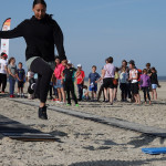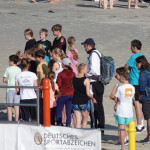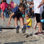 Heute Vormittag hat die Inselschule den dieses Jahr wieder auf Langeoog stattfindenden Sportabzeichentag genutzt, um Leistungen abnehmen zu lassen. Bei Sonnenschein und unter prominenter Anleitung wurden verschiedene Leistungsstation angegangen und in mehreren Durchläufen abgenommen. Die Helfer gaben dabei gute Tipps zur Durchführungen der einzelnen Übungen, die teilweise neu für die Prüflinge waren.