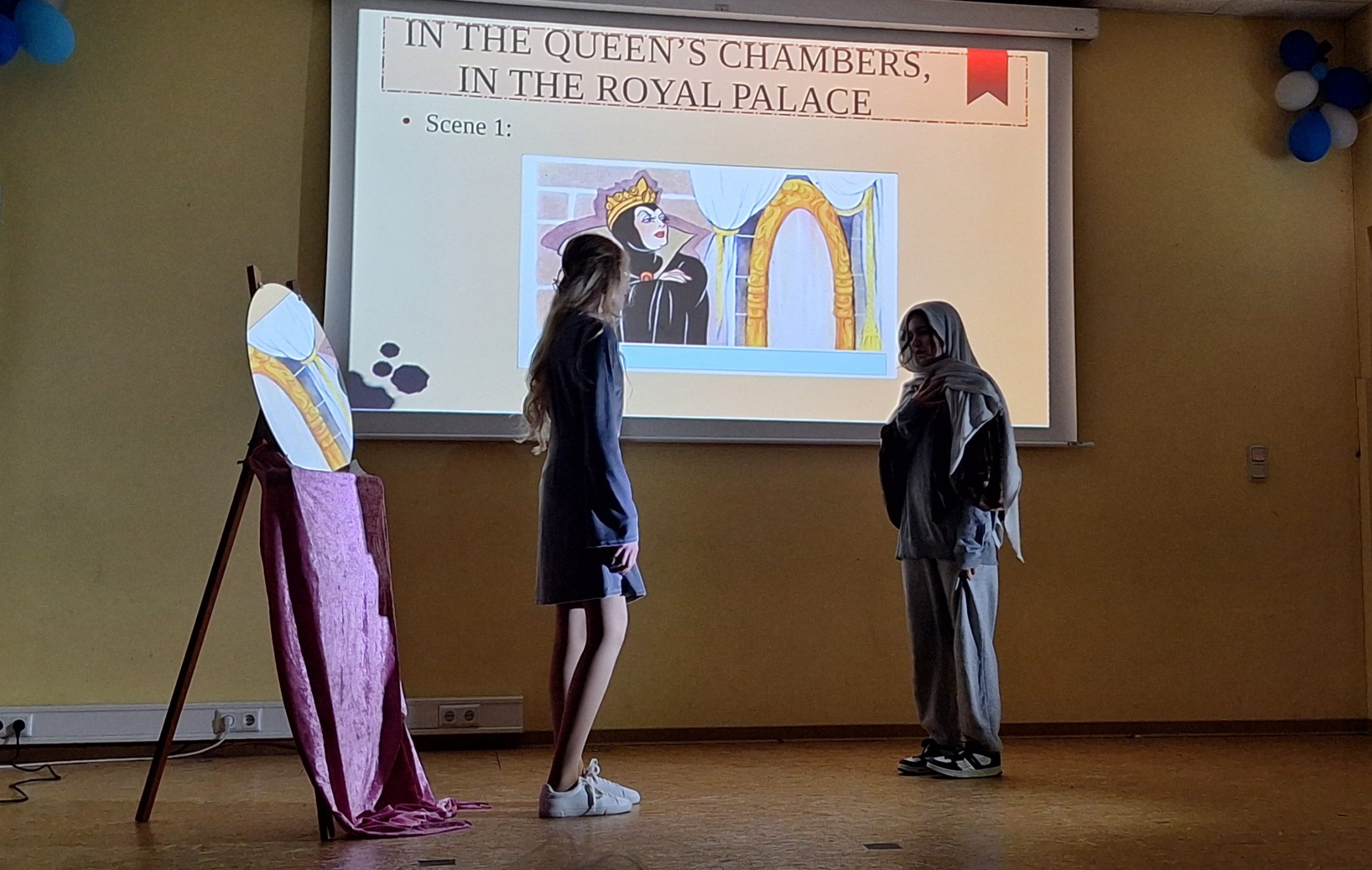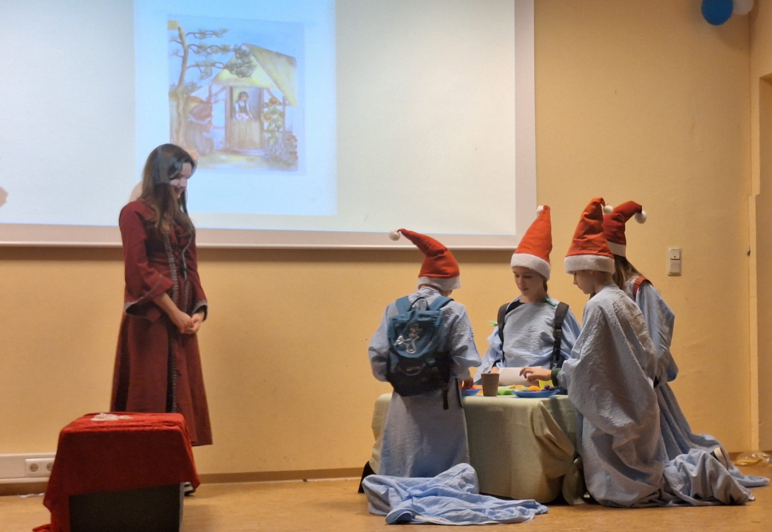 Da bereits im Vorfeld das Märchen mit den Grundschulklassen gelesen wurde, machte auch die Sprachbarriere kaum Probleme. Mühelos und gebannt verfolgten auch die Kleinsten das unglaubliche Spektakel, das sich in ihrer Aula ereignete und das überraschende Ende.