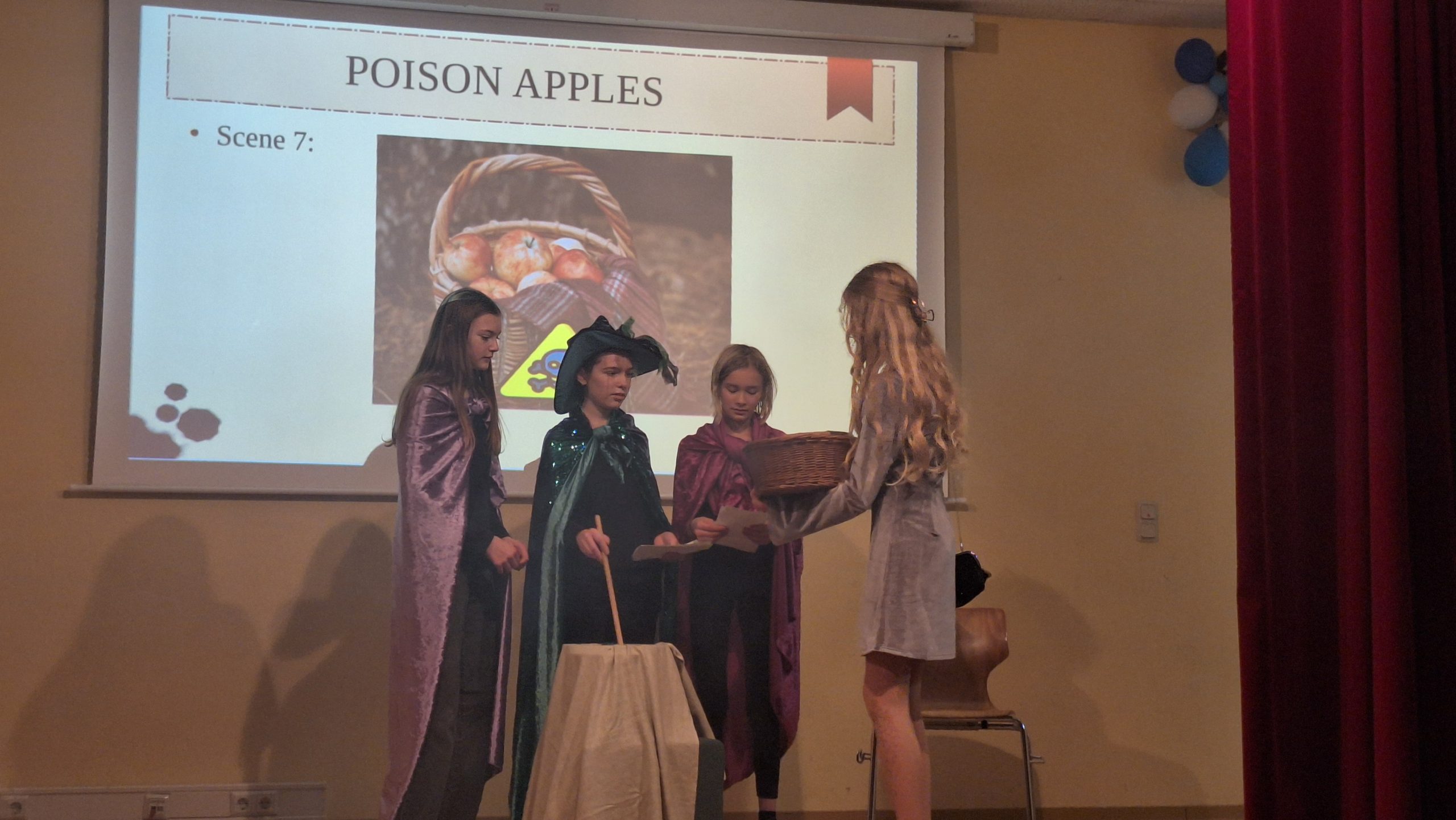 Schneewittchen und die sieben Zwerge ist wohl jedem bekannt, aber was den Inselkindern geboten wurde, ist kaum zu toppen. Perfekte Kostüme, grandiose Deko, ein (fast) echtes Herz aus der Biologiesammlung und eine Nebelmaschine, die einige Szenen in magisches Licht tauchte – es blieben keine Wünsche offen.
