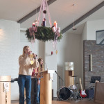 Schon vor Beginn wurden die Anwesenden von fröhlichen Klängen der Schulband begrüßt, die mit Drums und E-Gitarren eher ungewöhnliche Instrumente für einen Gottesdienst mitgebracht hatten. Musiker Oleg Stele, der die Schulbands, gefördert durch Kubus e.V., betreut, war natürlich auch mit von der Partie. Auch der Schulchor (Leitung: Susanne Agena) wird von Kubus e.V. unterstützt, der Projektchor (Leitung: Min Wang) ist aus dem Englischunterricht erwachsen.
