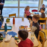 Endlich angekommen, war die Freude auf beiden Seiten groß. Erzieherin Sabine Birgfeld erwartete die Kinder zusammen mit der neuen „6er-Bande“. Nachdem ein Begrüßungsgang durch die ehemaligen Gruppenräume absolviert wurde, ging es ans gemeinsame Frühstück. Anschließend wurde gearbeitet: Denksportaufgaben und Legespiele forderten die Kinder. Zur Belohnung gab es noch Spielzeit und abschließend wurden mit allen Kindern Lieder gesungen, die allen noch gut in Erinnerung waren.
