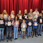 Am Tag der Zeugnisausgabe gab es erstmal etwas anderes zu feiern: Die Sportabzeichen! Im Sommer hatte die gesamte Inselschule am Sportabzeichentag teilgenommen ( Sportabzeichentag auf Langeoog – Inselschule Langeoog), bis zum Ende des Jahres konnten dann noch nachträglich Leistungen erbracht werden, die im Sportunterricht abgenommen wurden, nun war es endlich soweit. 16 Goldabzeichen wurden von den Sportlehrern Anja Börgmann und Karsten Kugelberg an die Spitzensportler der Inselschule übergeben, die Bronze- und Silberabzeichen oder Teilnehmerurkunden gab es anschließend im Klassenverband. Anja Börgmann darf sich übrigens auch eine Goldmedaille anstecken.