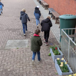 Irgendwie hat der Osterhase Schwierigkeiten, seine Termine zu koordinieren, denn schon wieder war er ganze drei Tage zu früh an der Inselschule. Das machte den Kindern allerdings gar nichts, mit großer Begeisterung suchten sie auf dem ganzen Schulhof nach den süßen Köstlichkeiten.