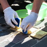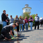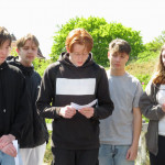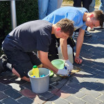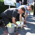 Sie präsentierten jeweils kurze Texte, die u.a. Hintergrund und Rezeption des Stolperstein-Projekts erläuterten oder mit dem Zeitraum untrennbar verbundene Begriffe wie „Deportation“ erklärten. Während der Ansprachen behandelten die Schüler Fynn und Tamme die drei Messingquader behutsam nach der vorliegenden Anweisung des Künstlers.