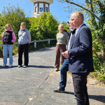 Im Anschluss ergriff Peter Wettstein im Namen des Langeooger Heimatvereins das Wort. Der 1. Vorsitzende, Erhard Nötzel, war leider terminlich verhindert. Der Heimatverein war bei der Umsetzung des Stolperstein-Projekts federführend. Peter Wettstein erläuterte den Anwesenden den Weg von der Idee zur Realisation und die damit verbundenen Herausforderungen. Etwa die, dass es lange kaum Material zur NS-Zeit auf Langeoog gab, bis sich der Historiker Prof. Dr. Jörg Echternkamp aus Potsdam intensiv der Materie annahm; ebenfalls in engem Austausch mit dem Heimatverein.