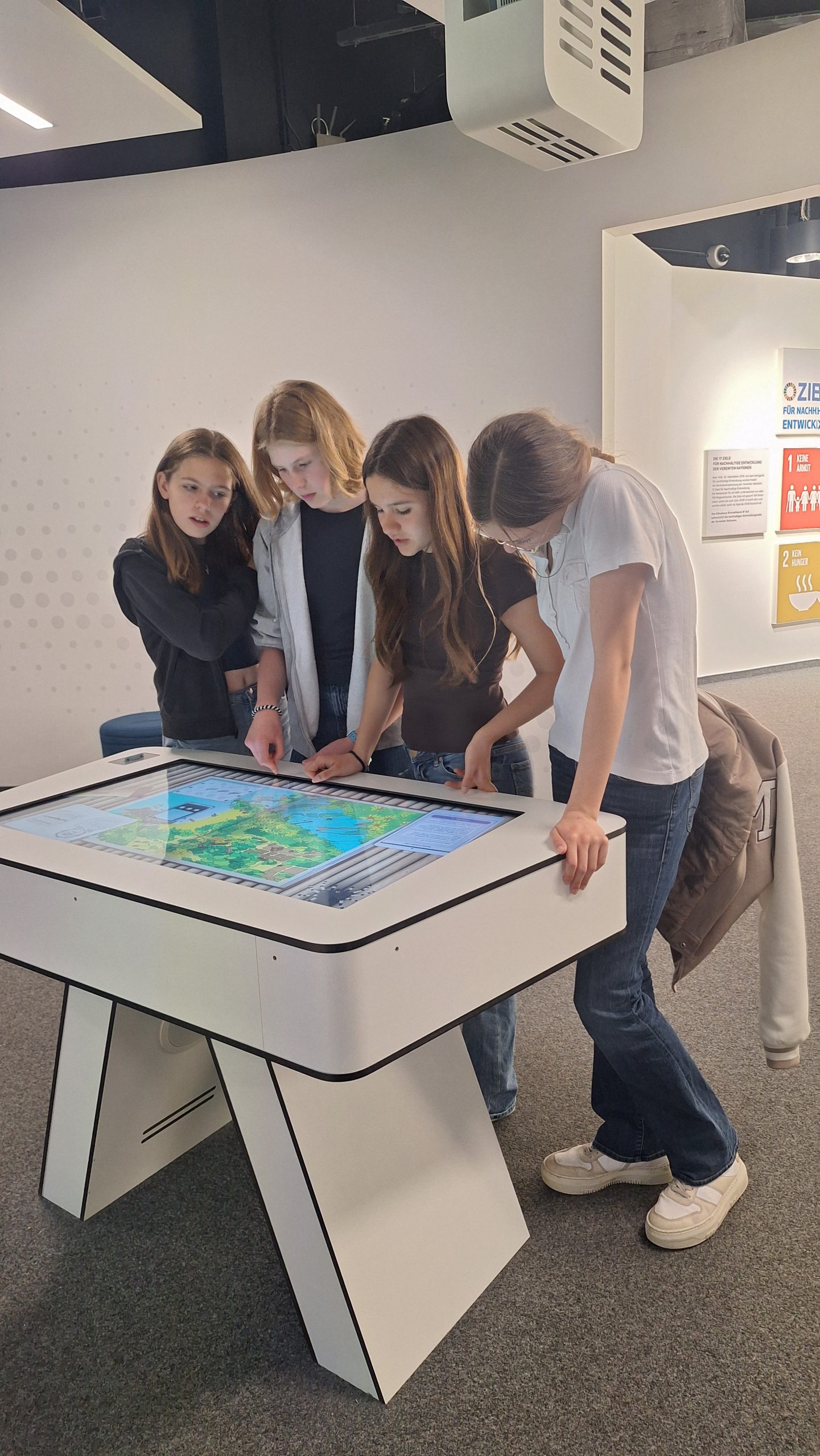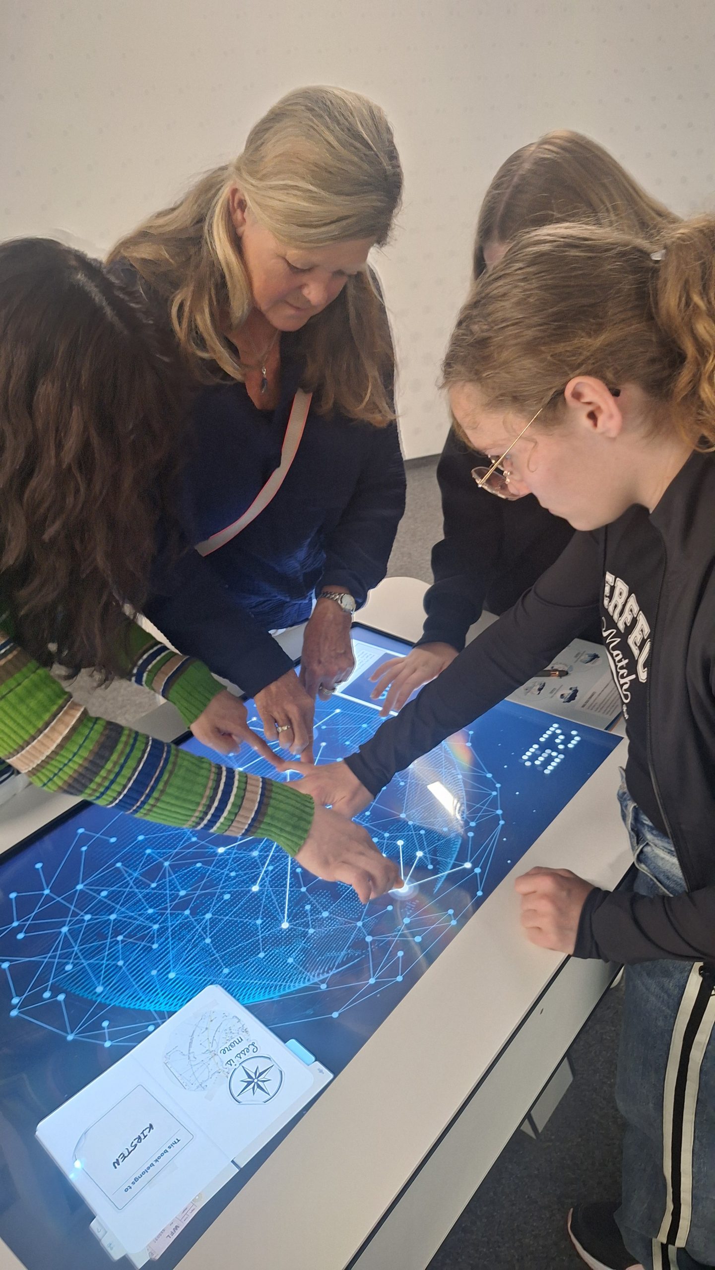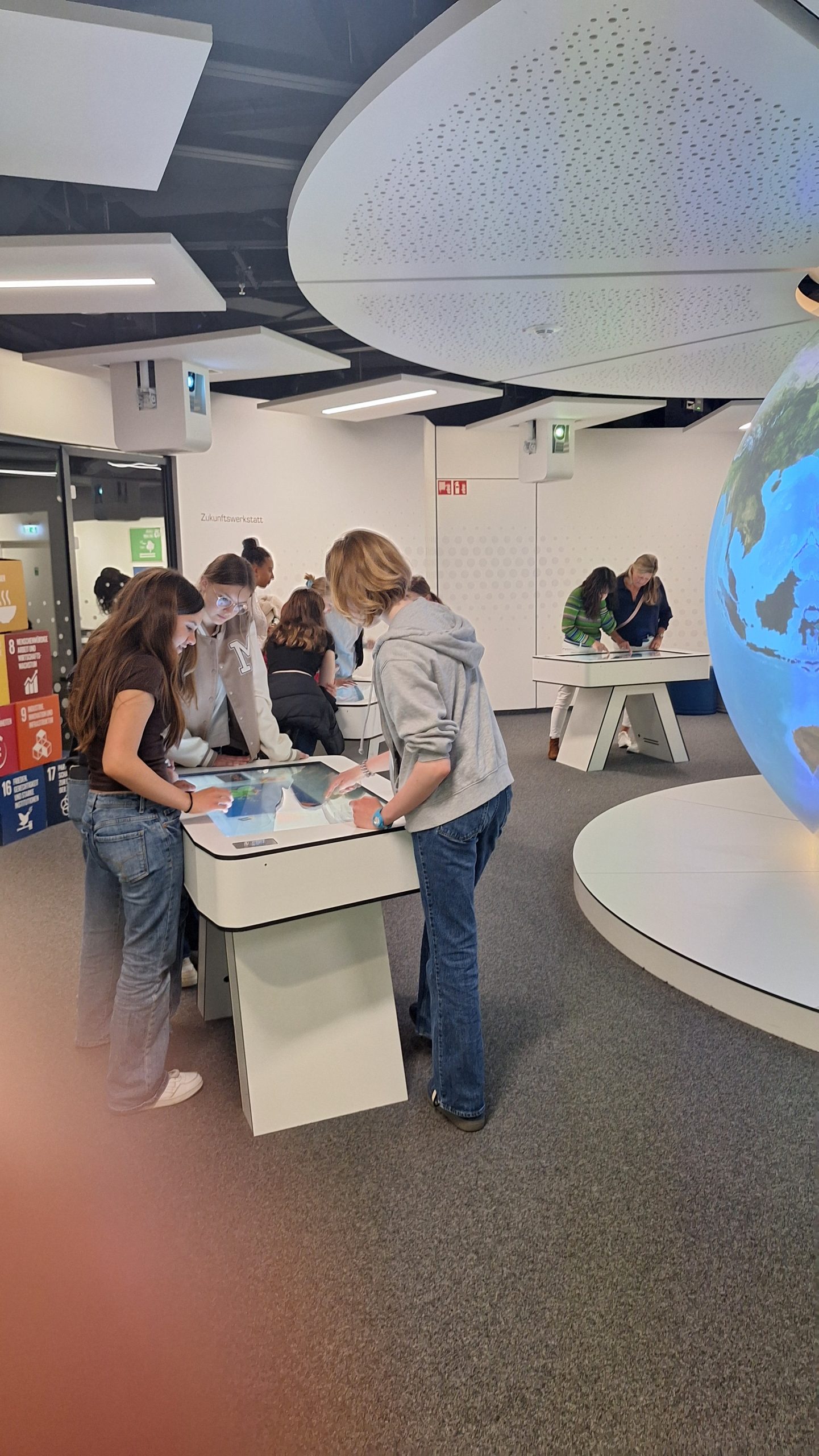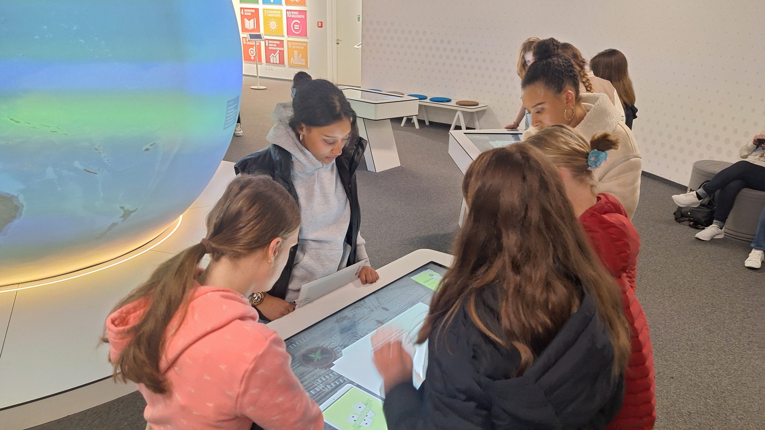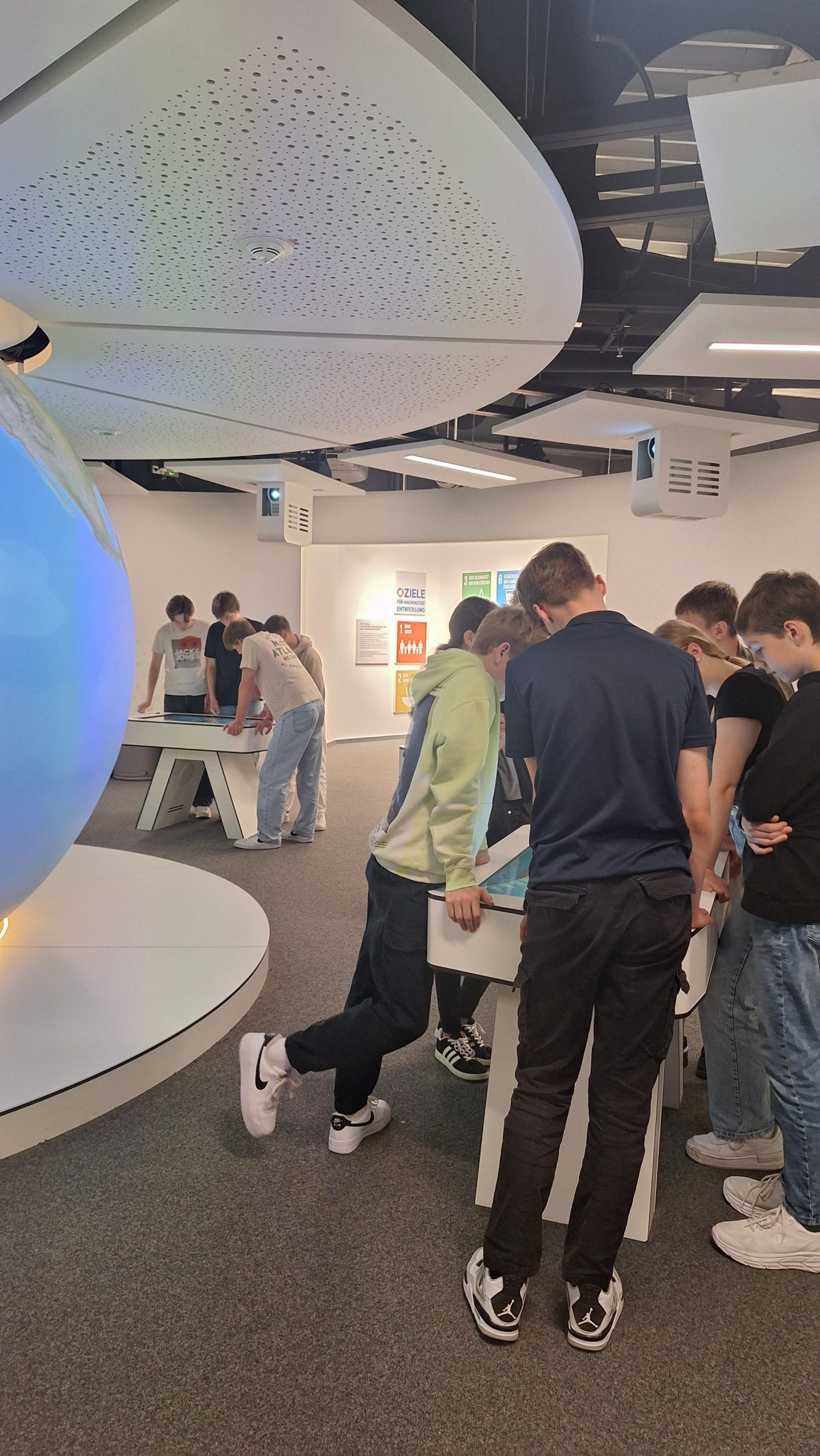 Zu einer besonderen Bildungsveranstaltung der Inselgrünen, vertreten durch Bärbel Kraus und Christel Sommer, waren die Klassen 7, 8 und 9 geladen: es ging ins Klimahaus nach Bremerhaven. Begleitet wurden sie von den Klassenlehrerinnen Kirsten Rottmann und Min Wang sowie Schulleiterin Petra Ahrenholz. Nach einer kurzen aber überaus interessanten Einführung ging es als erstes zum World Future Lap, wo man in Gruppen um einen großen Globus gruppiert beispielsweise eine Südseeinsel vor dem Meeresanstieg retten, Smartphones nachhaltig produzieren oder den eigenen Stadtteil zukunftsgerecht gestalten sollte. Das jeweilige Erfolgsergebnis war immer auf dem Globus nachzuverfolgen.