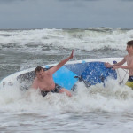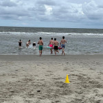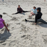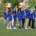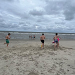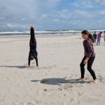 Der Weg zum Erlebniscamp war zwar der weiteste, hier wurde aber neben sehr viel Abwechslung auch noch ein leckeres Mittagessen geboten. So konnte sich die Sek I bei Pizza oder Burgern von der Strandolympiade erholen. Die Mutigen waren mit SUPs im Wasser, mussten sich aber nur unter Einsatz der Hände vorwärtsbewegen. Doch auch Wikingerschach, Beachvolleyball, Frisbee und andere Mannschaftswettbewerbe fanden großen Anklang. Ein Highlight war das Erlernen von Gebärdensprache. Mit Hilfe eines Daumenkinosets konnten einfache Begriffe schnell erblättert und angewendet werden.