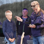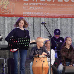 Beim Ententanz animierten die beiden Sänger nicht nur die Zuschauer zum Mitmachen, er bot auch für Lars Vogel vom Lions-Club und Thomas Agena vom Rotary-Club die Gelegenheit, mit einer Riesen-Badeente Werbung für das Entenrennen zu machen und Rennlizenzen für die Veranstaltung am Sonntag, 24. August zu verkaufen.