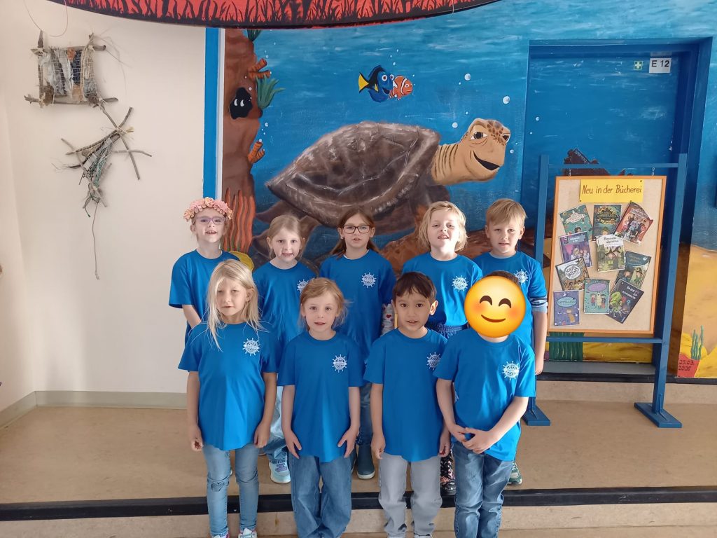 Pünktlich zu den Herbstferien konnten die Erstklässler ihre Schul-T-Shirts in Empfang nehmen! Wie in jedem Jahr hatte der Förderverein extra Shirts mit dem Schullogo anfertigen lassen, die nun stolz von unseren Jüngsten präsentiert werden.