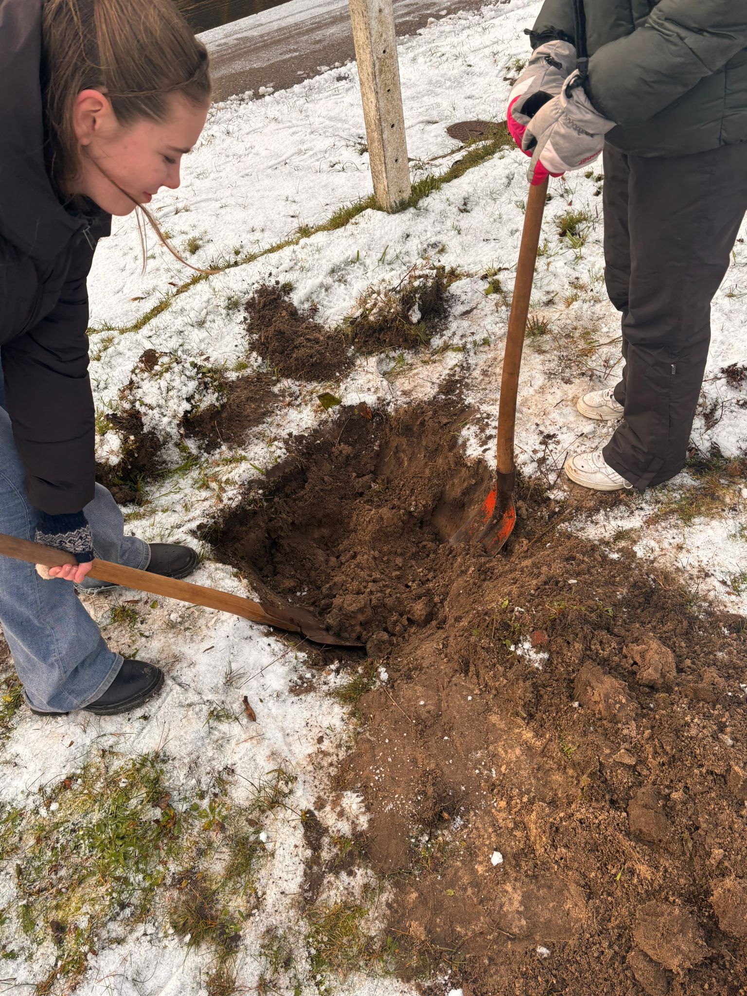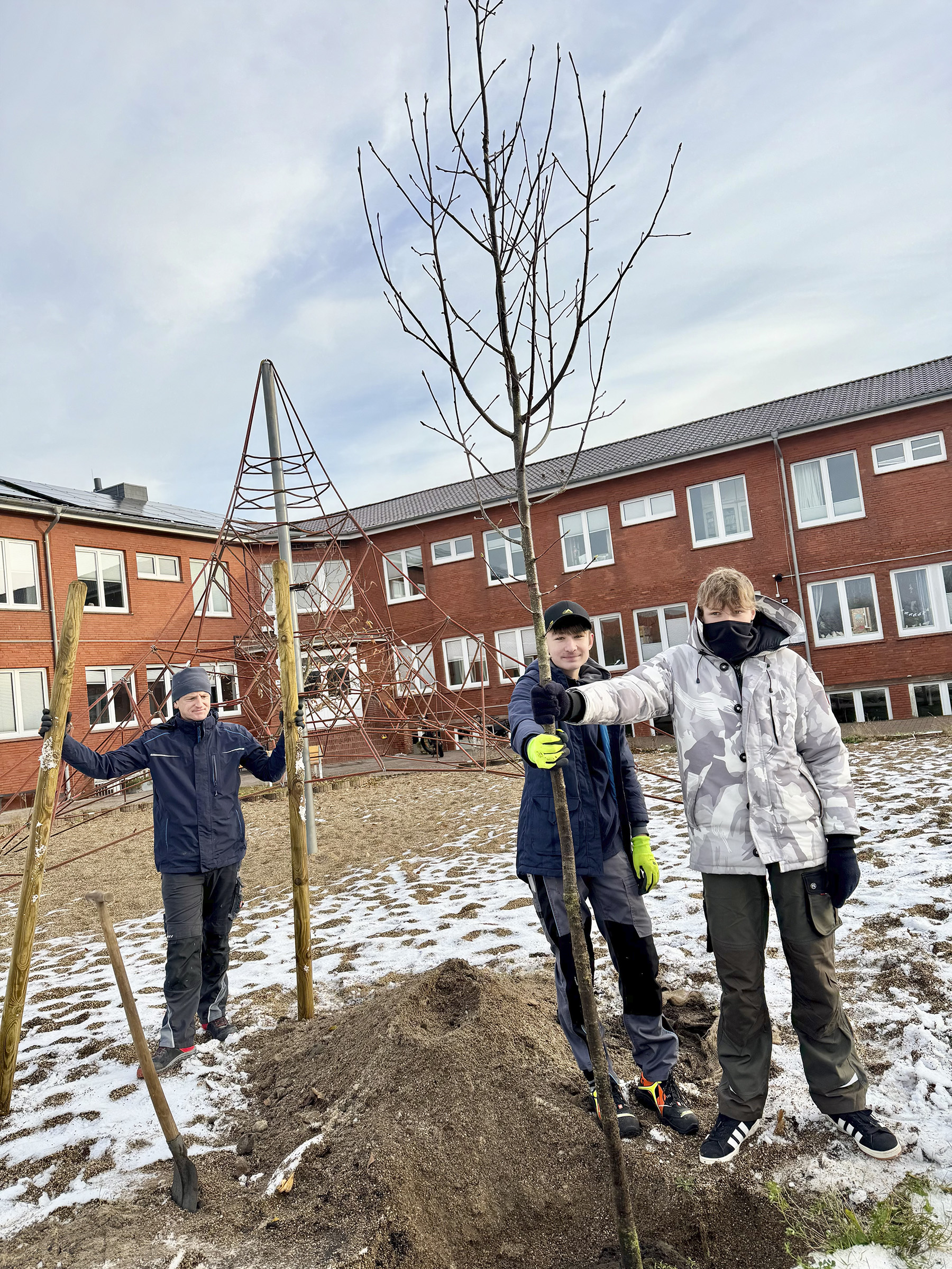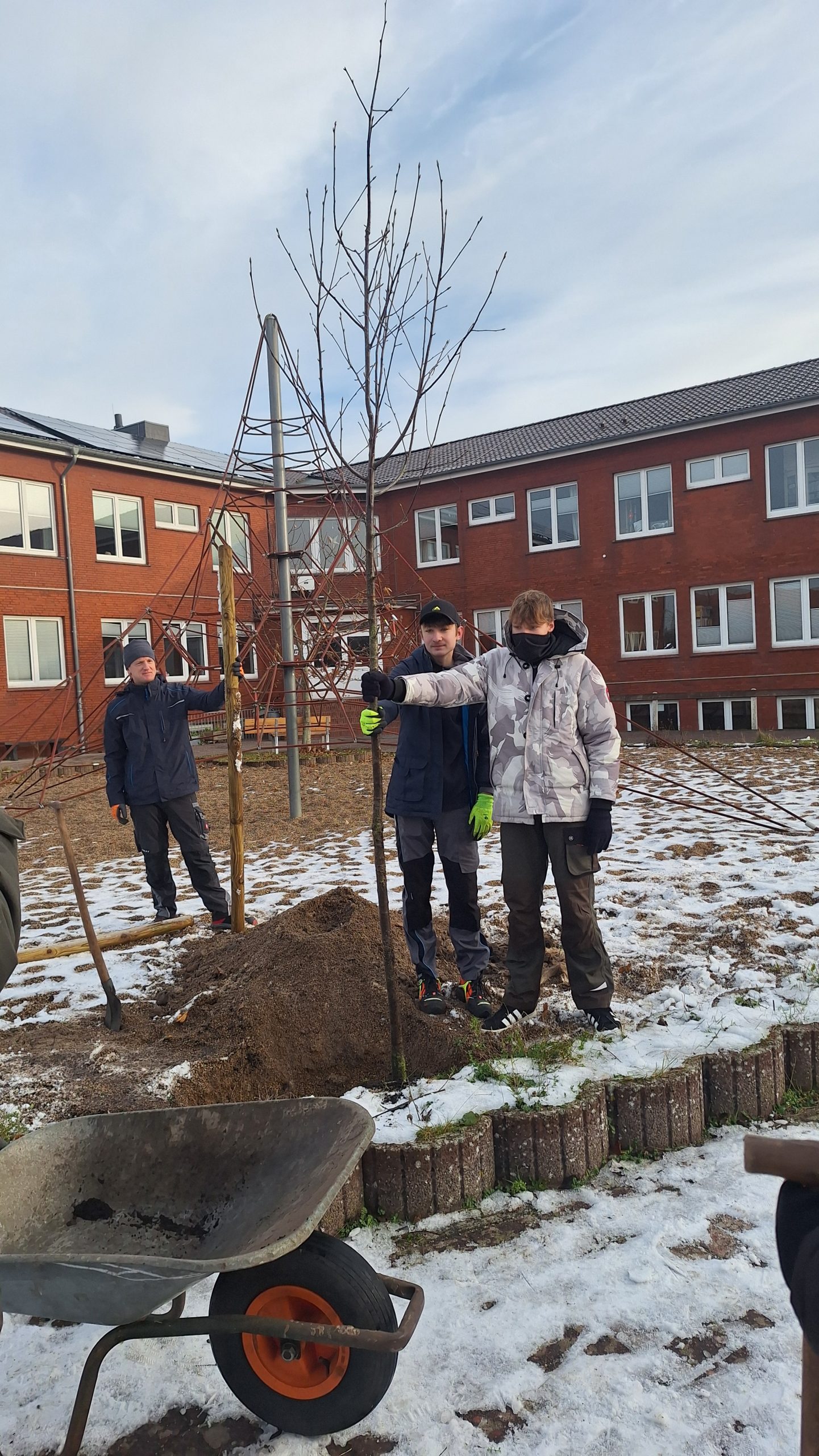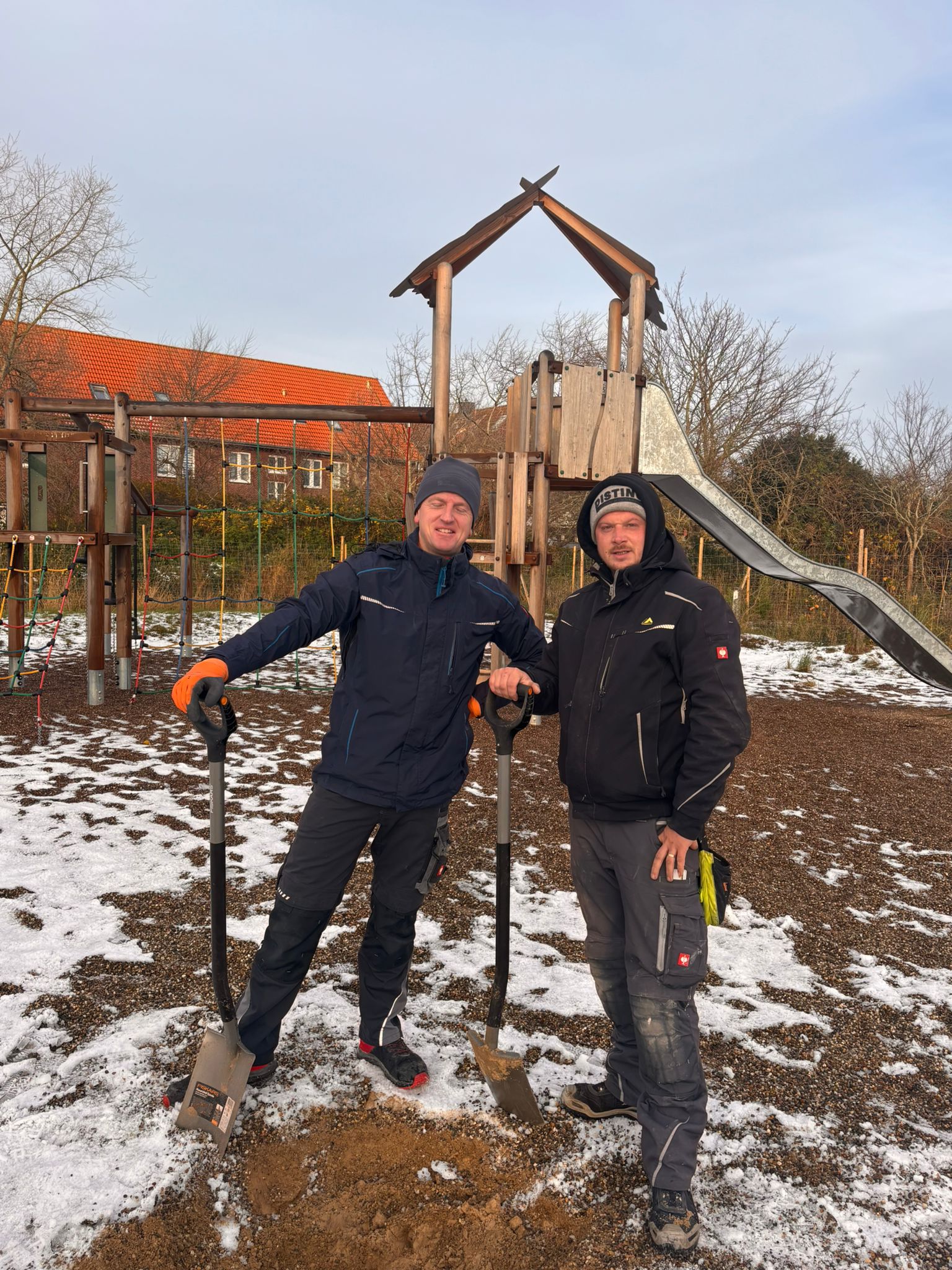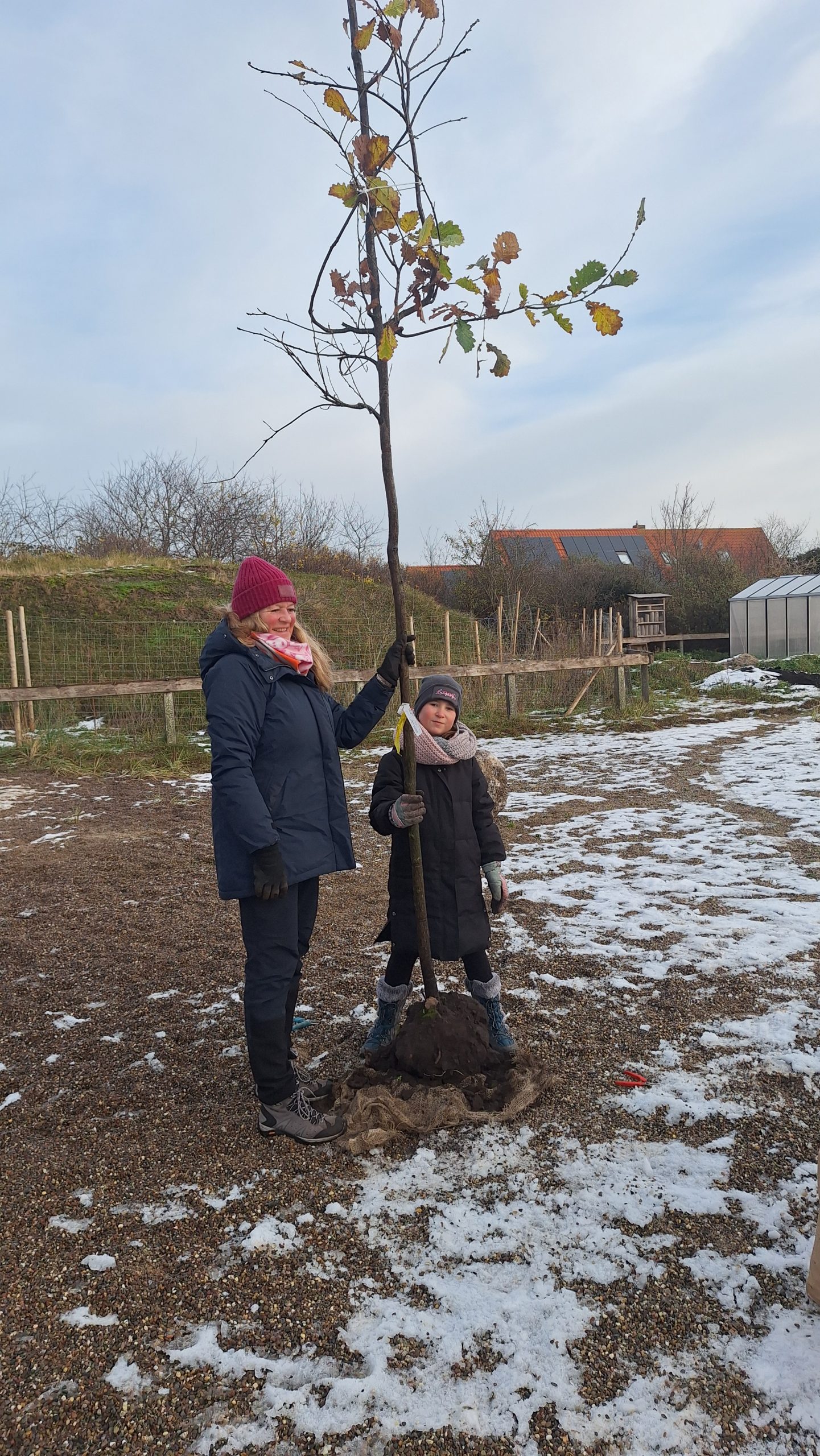 „Viele Hände – schnelles Ende“, anders lässt sich der Samstag nicht beschreiben. Schülerinnen, Schüler und Eltern waren dem Ruf nach Unterstützung von Umweltwissenschaftler Deff Westerkamp und Biologielehrerin Kirsten Rottmann gefolgt und brachten Kaiserlinde, Traubeneiche, Elsbeere und Ginkgo in den neuen Heimatboden auf dem Schulhof der Inselschule, auch sechs Efeupflanzen kamen in die Erde. Spitzahorn und Walnuss hatten bereits im Rahmen einer Zwei-Mann-Aktion einen neuen Platz gefunden, hier bekam Deff Westerkamp Unterstützung von Landschaftsarchitekt Marko Schurig. Dieser hatte nicht nur wertvolle Tipps zu Baumsorten beigesteuert, er wird auch noch einen Bergahorn und eine Eberesche aus seinem Garten spenden. Besonders letztere ist ein wahrer Vogelmagnet und für Insekten, Vögel und Säugetiere eine wertvolle Futterpflanze. Einige Blumenzwiebeln aus der beliebten Aktion „Tulpen für Brot“, die von Kirsten Rottmann im Rahmen der Schulgarten-AG eingepflanzt werden, wurden ebenfalls gesetzt und sollen im Frühling die neu gepflanzten Bäume umrahmen.