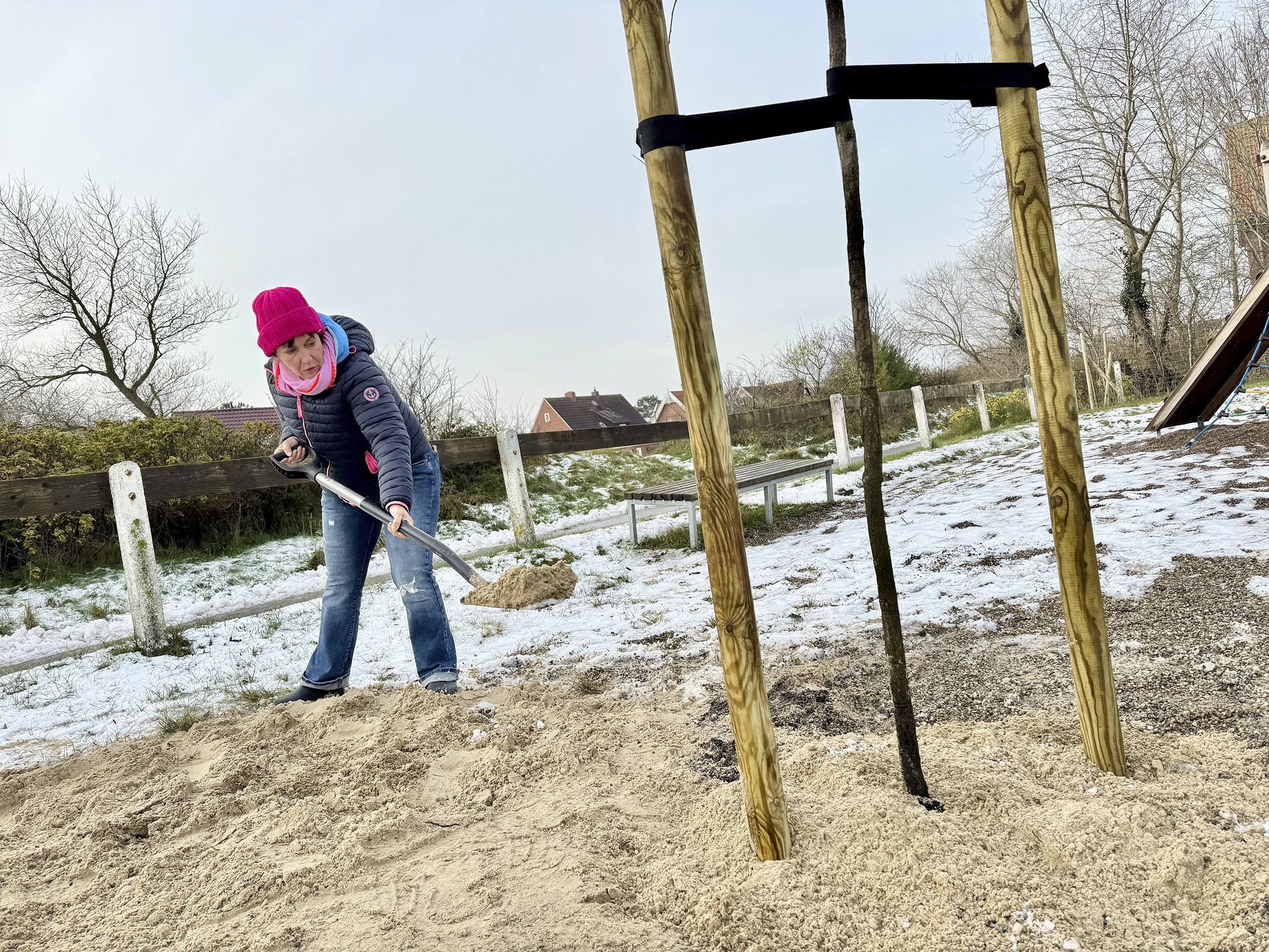 „Wir haben im Kollegium überlegt, wie wir mehr Schatten auf den Schulhof bekommen“, teilt Petra Ahrenholz mit. Viele heiße Tage gebe es zwar nicht, aber dann brenne die Sonne erbarmungslos auf die spielenden Kinder. Ein Sonnensegel wurde gemeinsam verworfen, Wind und auch Verschmutzung durch Möwen sprachen dagegen. Stattdessen setzt die Inselschule auf mehr Artenvielfalt.
