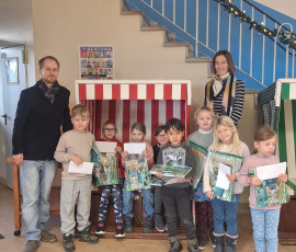 Das Schuljahr ist nun schon einige Wochen im Gange und wie es immer so ist, werden viel genutzte Gegenstände auch mal verbummelt. Umso mehr freuten sich also die neun Erstklässler zusammen mit Klassenlehrerin Kirstin Müsch und Schulleiterin Petra Ahrenholz über Blöcke, Anspitzer, Buntstifte, Schere und Aufkleber, was in der nächsten Unterrichtsstunde gleich zum Einsatz kam. Außerdem bekam jedes Kind einen persönlichen Brief. Klassenlehrerin Kirstin Müsch freute sich ebenfalls über eine nette Aufmerksamkeit, die gleich nützliche Anwendung im Schulvormittag fand.