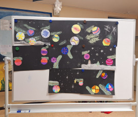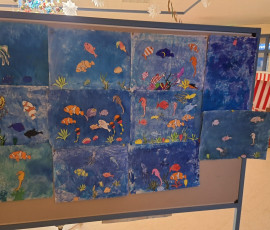 Auf dem Weg dorthin wünschten die Kunstwerke der Klasse 3 und 4 allen frohe Weihnachten.