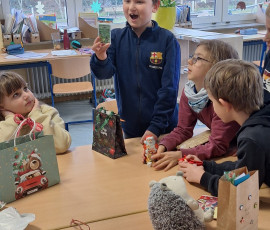 Am letzten Tag wurde entweder gefrühstückt oder gewichtelt. Das Erwürfeln der Geschenke brachte noch einen besonderen Reiz und Spannung, bevor es dann in den Schulgottesdienst ging…