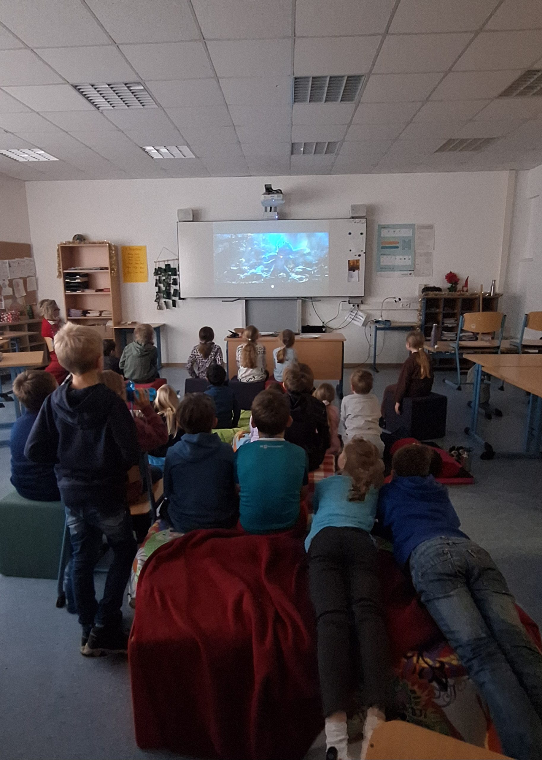 Kurz vor den Weihnachtsferien geht alles einen anderen Gang. Die Sek I fuhr zum Eislaufen nach Sande und alle hatten dort großen Spaß und auch den Kleinen wurde mit einem Kinoerlebnis ein etwas anderer Schultag geboten. Dank der neuen Popcornmaschine gab es auch noch etwas zum Knabbern.