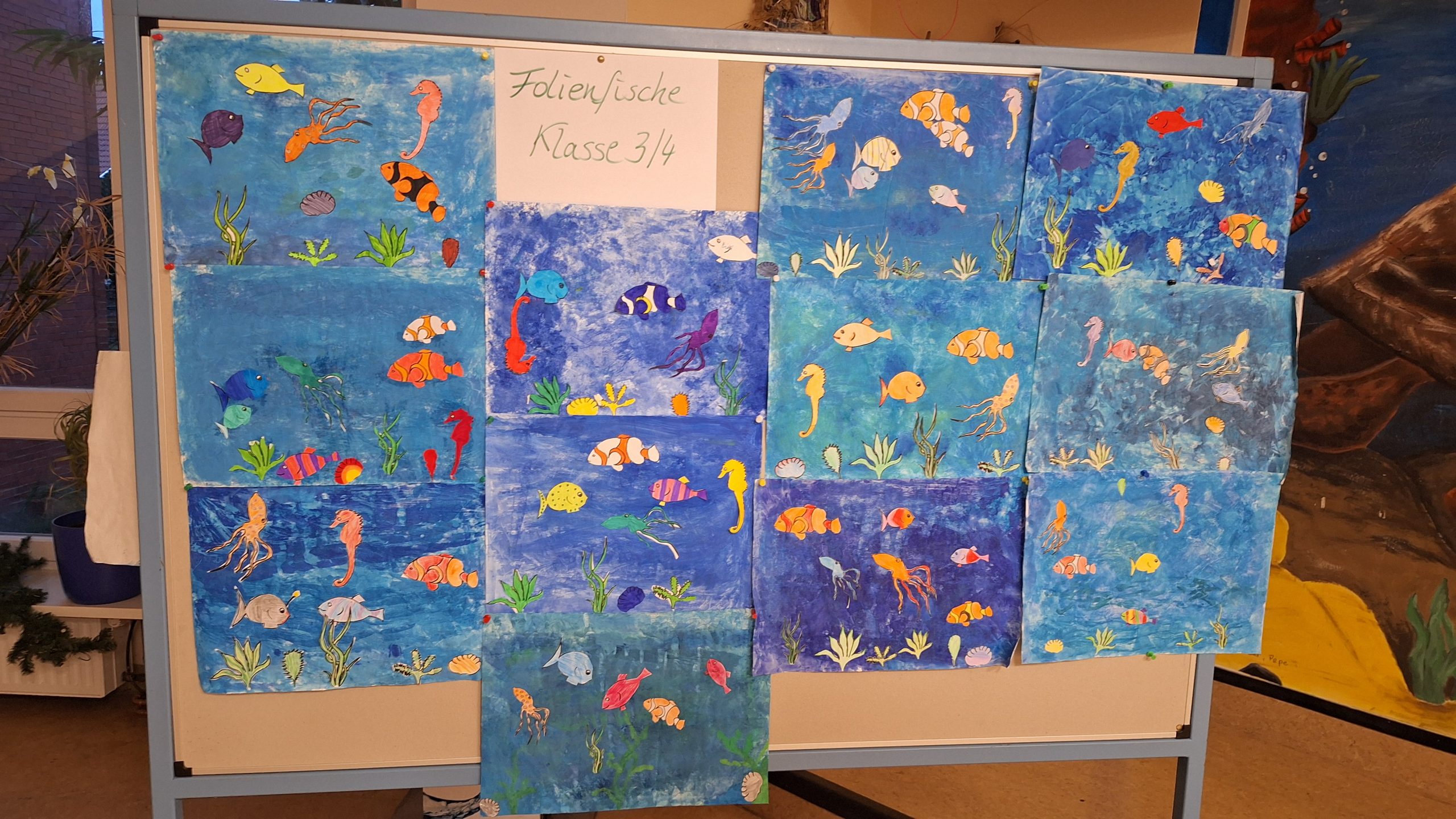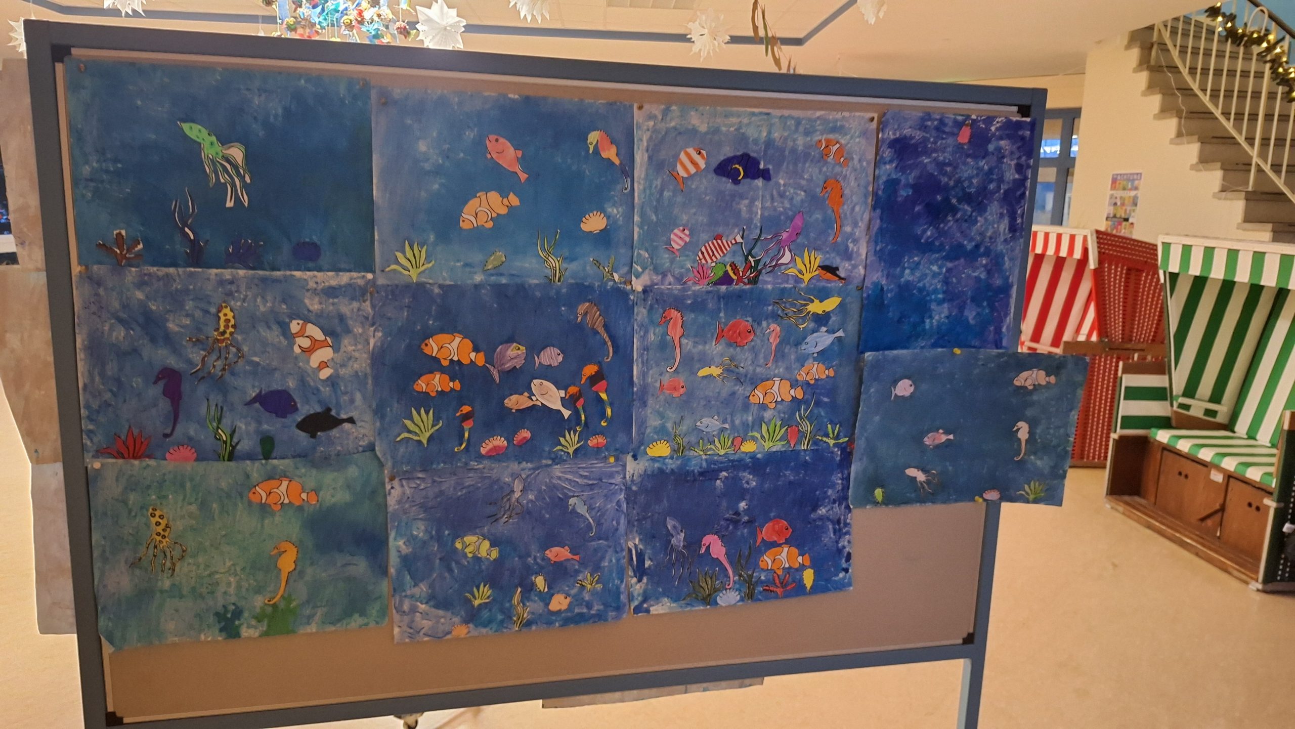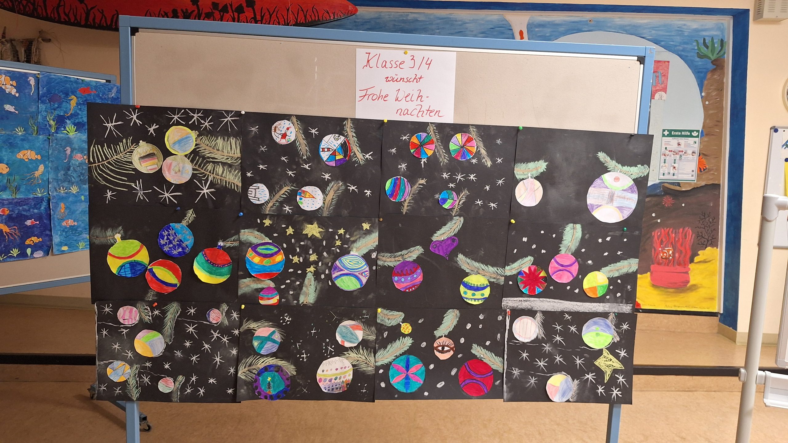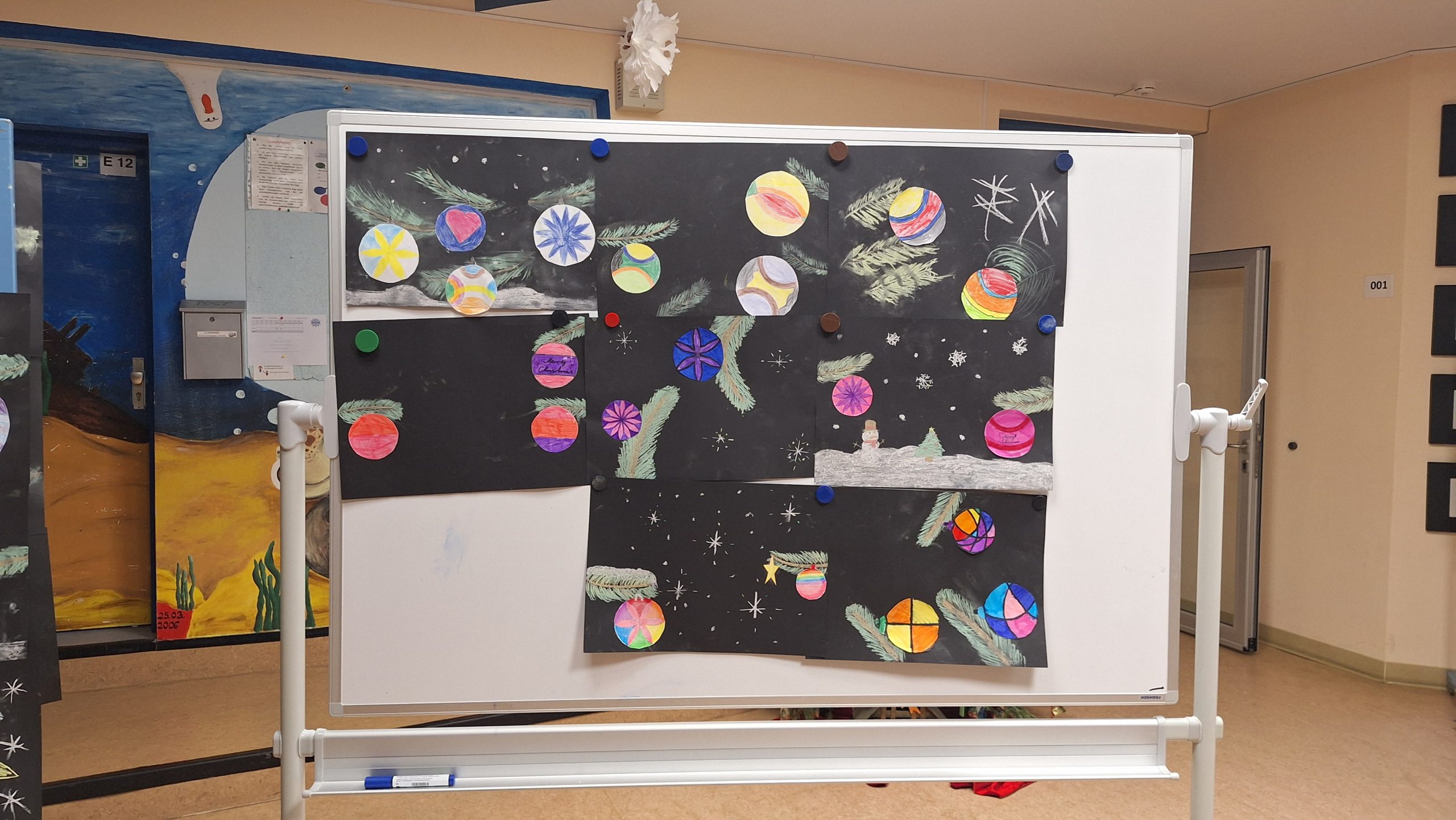Auf dem Weg dorthin wünschten die Kunstwerke der Klasse 3 und 4 allen frohe Weihnachten.