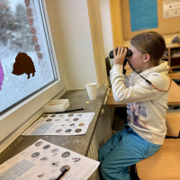 Die Rollen waren allerdings etwas ungleich verteilt. Während die jungen Wissenschaftler im gut geheizten Klassenzimmer bei Kinderpunsch und Keksen ihrem Forscherdrang nachkamen, froren die Vögel im Schneesturm und balgten sich um Meisenknödel und Streufutter.