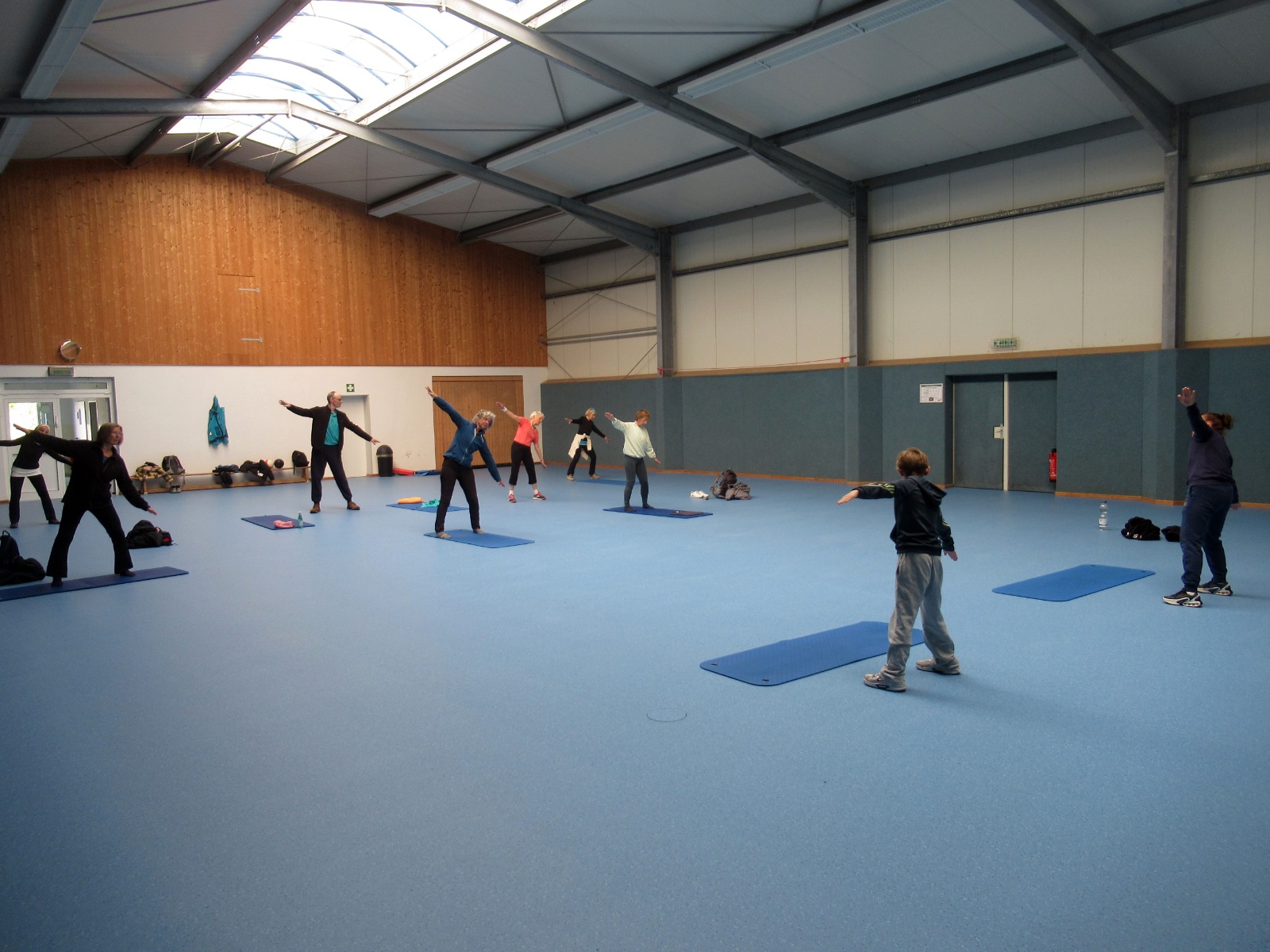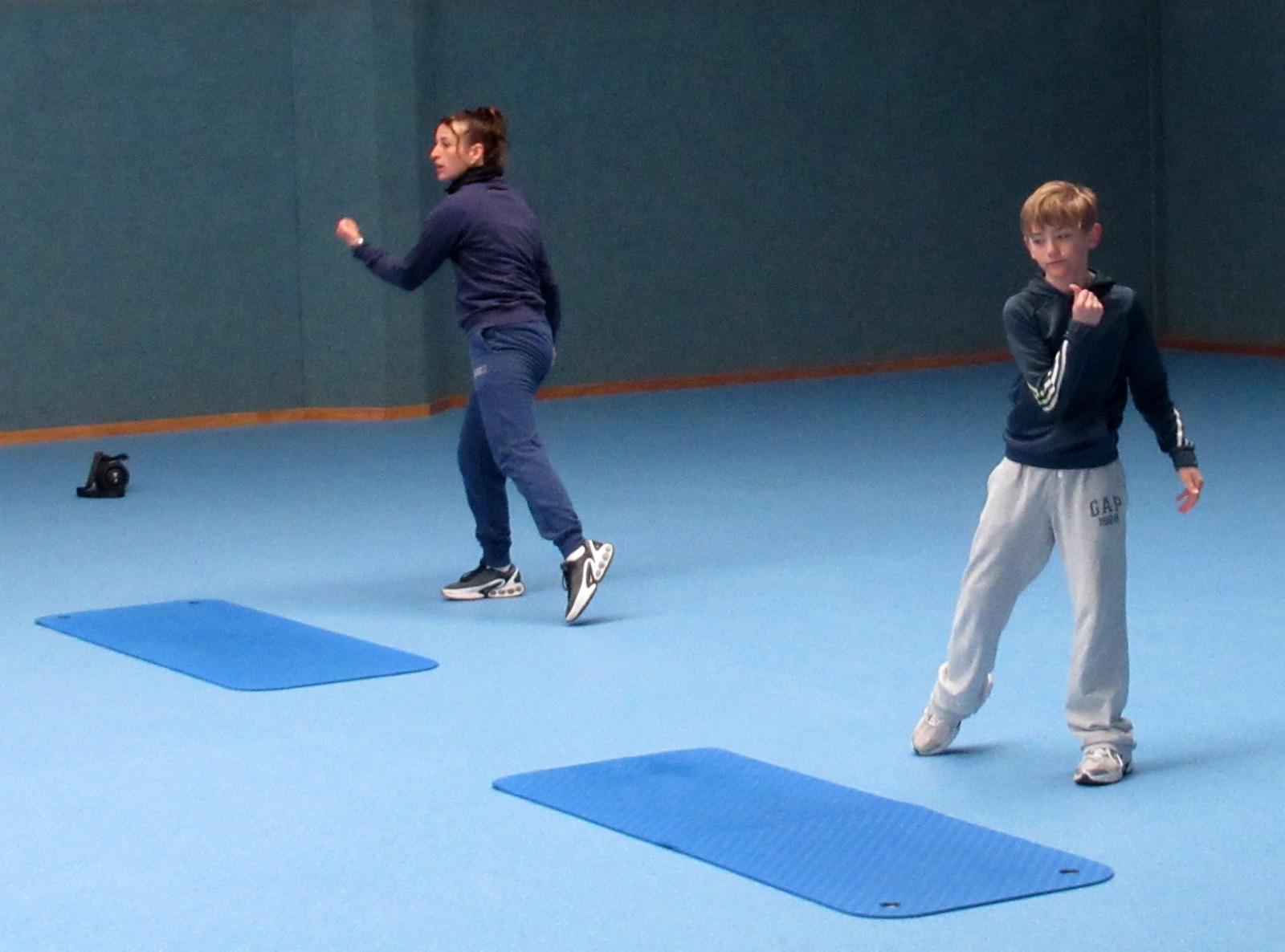Sportlich wurde der Berufsschnuppertag für Marlon Kuppi, der Sportteamerin Kamelia Touahnamei bei der Durchführung des Sportangebots des Tages tatkräftig unterstützte. Bei „Fit in den Tag“ platzierte er seine Matte direkt neben der Trainerin und führte die Übungen mit ihr vor.