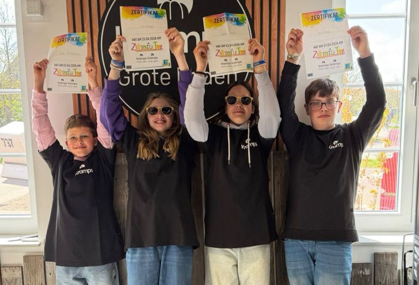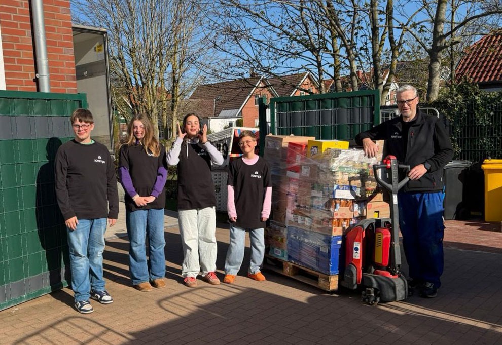 Gleich vierfache Unterstützung gab es in Kramps grote Laden an der Friesenstraße. Lina Veit, Fiete Friedemann und Mila und Miro Kramp packten hier kräftig mit an, durften eine Markt-Rallye machen und wurden am Ende von Britta und Mario Kramp mit coolen Sonnenbrillen, Bechern und einer Urkunde für ihren Einsatz entlohnt.
