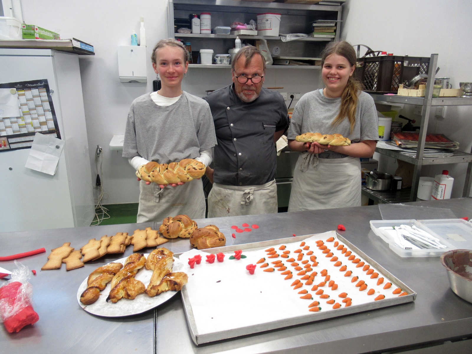 Früher aufstehen als an Schultagen mussten am Donnerstag Solveig Müsch von der Inselschule und Rebecca Cordes aus Steinhude. Beide hatten in der Backstube der Genussmanufaktur Seekrug angefragt, ob sie am Zukunftstag — früher Girls- and Boys-Day — mal in die Arbeit schnuppern dürften. Steffi und Hubert Recktenwald nahmen sich gerne für die beiden Zeit, gemeinsam wurde ein Hefe-Zopf und vieles mehr gebacken und später lernten die beiden, wie man kleine Möhren und Röschen aus Marzipan gestaltet. Beide hatten sichtlich Spaß an diesem Tag.